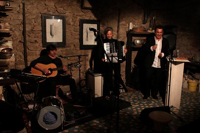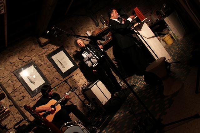 Journées portes ouvertes à la poterie de Lardet, chez Philippe Jacques, les 15 et 16 décembre 2012, concert donné par Xavier Michel, Carlo Bondi et Valérie Gonzalez. Les photographies sont de Bruno Drogue.